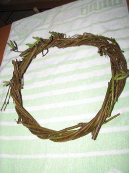 Zuerst wird ein Kranz aus den Weidezweigen geflochten. Die Zweige immer schön ineinander verklemmen. So kommt man ohne Bindematerial aus.