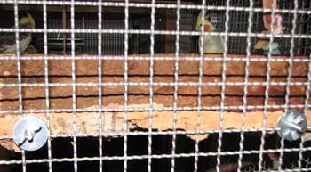 Ich befestige sowieso fast alles hängend und schaukelnd in der Voliere (Äste, Schaukeln, Brettchen, Näpfe), dass hat das Putzen erheblich erleichtert und sorgt für Koordinationstraining bei den Vögeln.Sind die Brettchen größer, verwende ich Stockschrauben. Das sind Schrauben mit zwei gegenläufigen Gewinden und ohne Kopf. Die lassen sich recht leicht in den Kork drehen und halten bombenfest.Dann noch eine Unterlegscheibe und eine Flügelmutter, schon hält das Brett an nur einer Befestigung.Die anderen Ecken kann man dann auch mit Rund- oder Eckhaken einhängen.