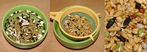 - Körnerfutter über Nacht in Wasser einweichen, jedoch maximal 8 Stunden
