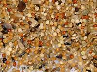 Der Hauptteil des Vogelfutters besteht aus Körnern. Als Grundfutter dient eine ausgewogene Körnermischung, die neben den gängigen Saaten auch Wildsamen, Beeren und Kräuter enthalten kann. Eine beispielhafte Zusammenstellung für Vogelfutter finden Sie in der Tabelle. Empfehlenswerte Großsittichmischungen kann man vor allem über das Internet und in einigen gut sortierten Fachgeschäften kaufen. Die Preise liegen bei etwa 6 bis 8€ pro Kg. In Zoogeschäften erhält man häufig Mischungen, die zu viele Sonnenblumenkerne enthalten. Aufgrund ihres Fettgehalts sollten Sonnenblumenkerne aber maximal 5% der Gesamtfuttermenge ausmachen. Auch die tägliche Körnermischung muss nicht langweilig sein. Es empfiehlt sich zusätzlich Futtermischungen für Wellensittiche zu kaufen. Wellensittichfutter kann man zu etwa zwei Dritteln mit Großsittichfutter vermengen. Diese Mischungen werden gern genommen, schaffen Abwechslung und sind zudem fettarm.