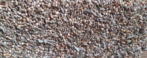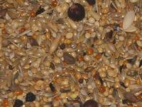 Diese Mischung setzt sich vor allem aus kleinen Saaten zusammen, Sonnenblumenkerne werden nicht verwendet.