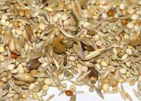 Man kann solche Mischungen zu etwa 2/3 als Grundfutter anbieten. Neben Hirsen sind auch Wildsamen, Spitzsaat, Negersaat und viele weitere Saaten enthalten.