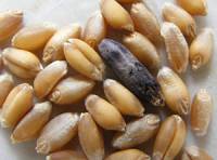 Hierbei handelt es sich um eine Pilzinfektion des Korns. Meist fällt der blauschwarze Parasit an der Pflanze sofort auf, da er mit bis zu 4cm Länge und 3mm Breite wesentlich größer als ein Getreidekorn ist. Es enthält stark giftige Alkaloide, die u.a. neurologische Störungen verursachen. Leider kann es gerade bei Futtermischungen aus Bioanbau dazu kommen, dass diese damit verunreinigt sind. Deswegen sollten Futtermischungen und Getreide immer vor dem Verfüttern kontrolliert werden. Das Bild zeigt ein Mutterkorn bei Dinkel.
