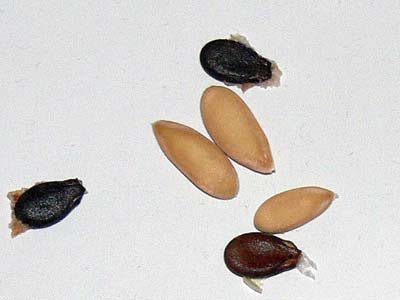 In Maßen Fruchtfleisch und Kerne. Die Kerne lassen sich getrocknet für den Winter aufbewahren.