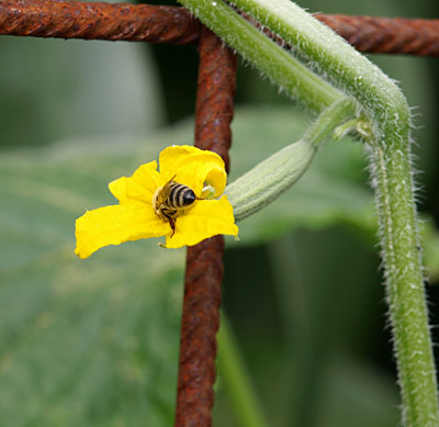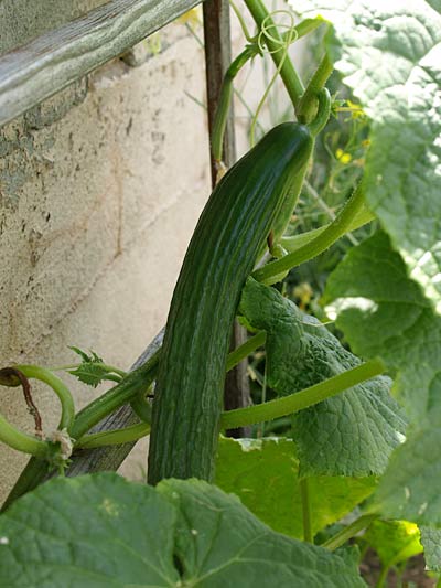 Die Gurkenpflanze wächst auf dem Boden kriechend oder kletternd. Sie bildet männliche und weibliche Blüten aus. Biologisch gesehen ist die Gurke eine Beere. Die grünen Salatgurken werden etwa 30 bis 40 Zentimeter lang, sind schlank, walzenförmig und an den Enden verjüngt.