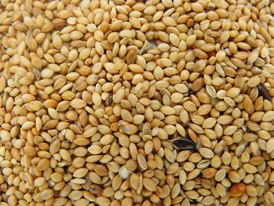 Halbreife und reife Samenstände. Die Kolben hängt man dazu in die Voliere. Für diesen Leckerbissen strengen sich die Vögel auch gerne mal richtig an. Deshalb ist Kolbenhirse z.B. für das Clicker-Training für Nymphensittiche eine gute Belohnung.
