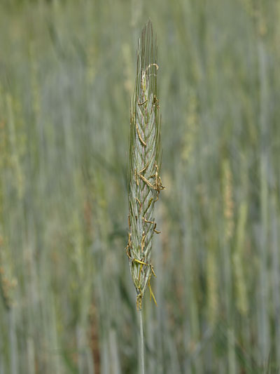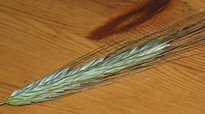<b>ACHTUNG:</b> In der Ähre von Gräsern und Getreiden kann ein sogenanntes Mutterkorn wachsen. Hierbei handelt es sich um eine Pilzinfektion des Korns. Meist fällt der blauschwarze Parasit an der Pflanze sofort auf, da er mit bis zu 4cm Länge und 3mm Breite wesentlich größer als ein Getreidekorn ist. Es enthält stark giftige Alkaloide, die u.a. neurologische Störungen verursachen. Leider kann es gerade bei Futtermischungen aus Bioanbau dazu kommen, dass diese damit verunreinigt sind. Deswegen sollten Futtermischungen und Getreide immer vor dem Verfüttern kontrolliert werden. Das Bild zeigt ein Mutterkorn bei Dinkel.<img src=„bilderfutternatur/Getreide_Mutterkorn_1.jpg“>