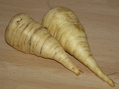 Die Wurzel des im Handel erhältlichen Gemüse-Pastinak kann ein Gewicht von 500 - 1500g erreichen und hat einen herben bis süßlich-würzigen Geschmack.