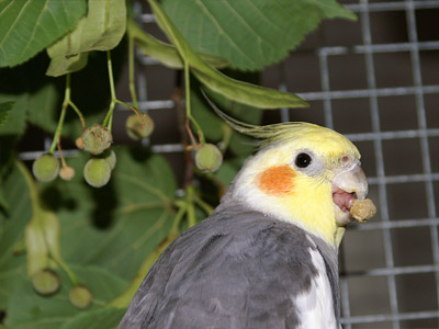 Zweige, Laub, Blüten und Samen. Die Samen werden von den Vögeln sowohl halbreif, als auch reif gefressen.Wegen der harntreibenden Wirkung in Maßen und nicht an nierenkranke Tiere verfüttern.