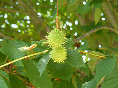 Im September bis Oktober werden in den grünen stacheligen Kapseln ein bis drei glänzend dunkel rotbraune ca. 3 - 5cm große Samen (Kastanien) mit großem weißem Nabel reif.