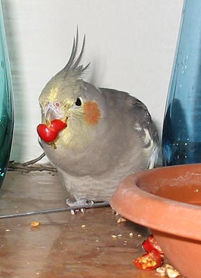 Das Fruchtfleisch und die Samen, welche auch im Futtermittelhandel erhältlich sind, können gefressen werden. Es empfiehlt es sich die Früchte zu halbieren.Ganze getrocknete Früchte werden meist von den Tieren nicht angenommen, da sie zu groß und hart sind. Verletzungsgefahr durch die Dornen - deshalb bitte nur die Früchte anbieten!