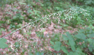 Die bis zu 30cm lange Rispe ist sehr locker und meist aufrecht. Waldhirse verfügt über äußerst dünne abstehende (effusus=ausgebreitet) Rispenäste die nach der Blüte aber oft herabgeschlagen sind.