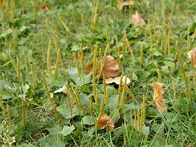 Synonyme: Spießkraut, Lungenblattl, Schlangenzunge und Spitzfederich</li><li> der Breitwegerich (Plantago major),
