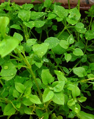 Die einjährigen satt grüne Pflanze wächst kriechend über den Boden. Die kleinen Blüten sind weiß.
